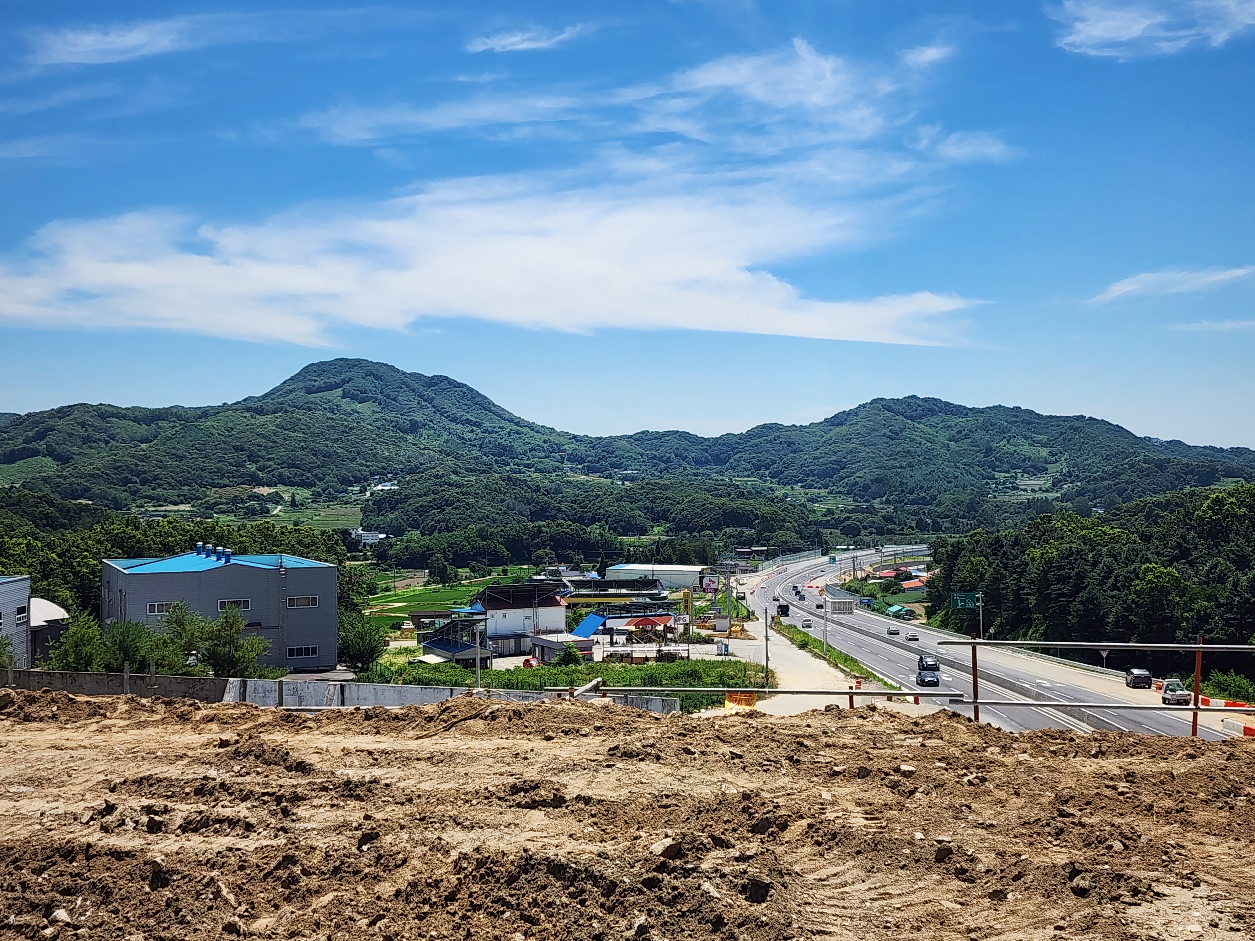 공사장에 내리쬐는 뙤약볕을 고스란히 맞으며 건넌다.
