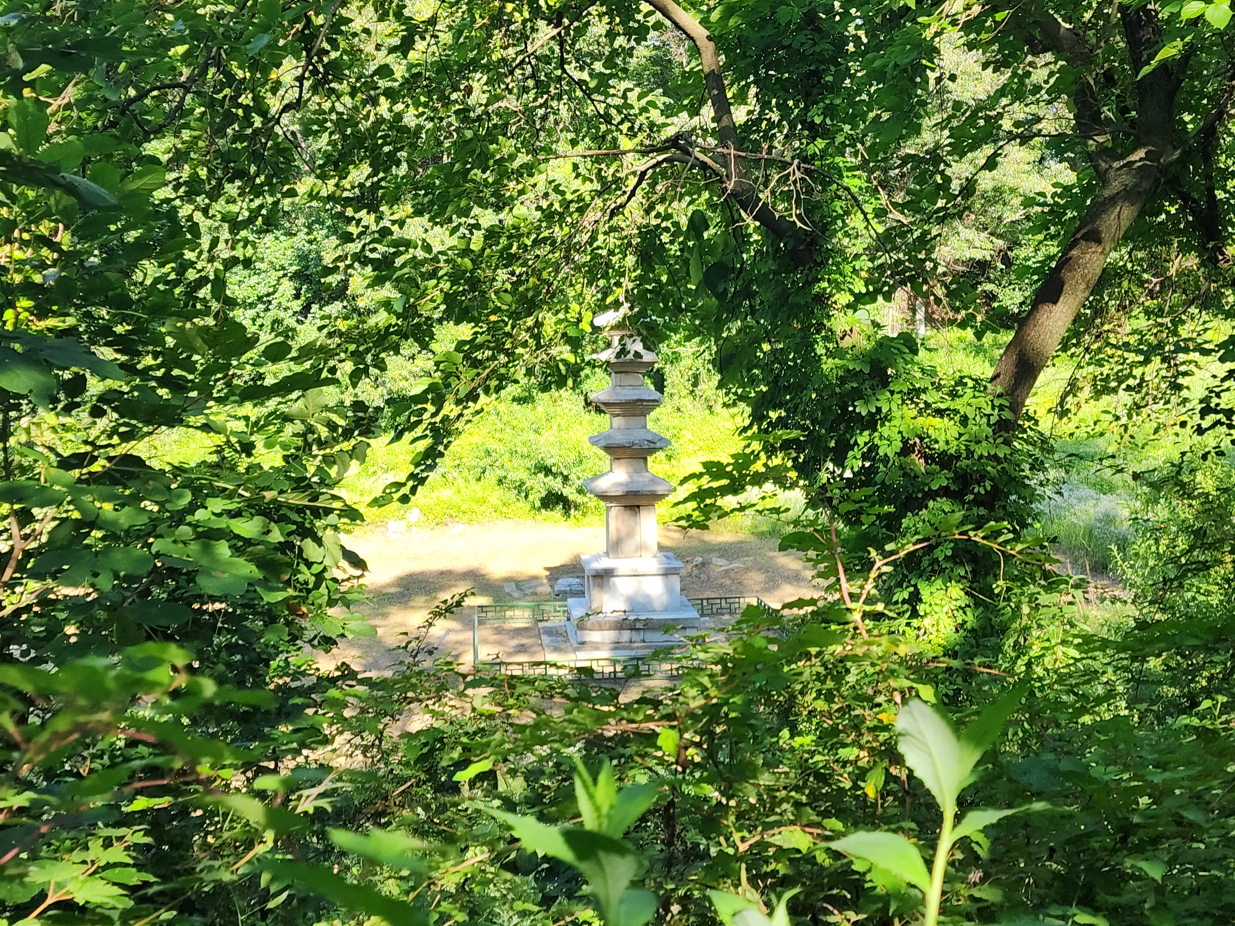 등로 왼쪽으로 석탑이 살짝 보인다.